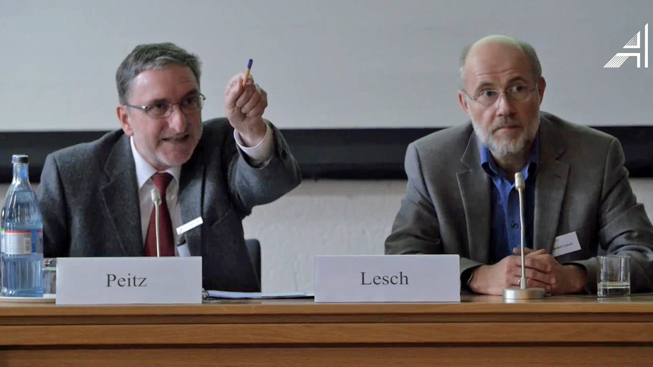 Renommierte Referent:innen ins Gespräch zu bringen ist eine der Hauptaufgaben des Fachbereichs. Hier: Heinz-Hermann Peitz und Harald Lesch im Dialog mit dem Publikum