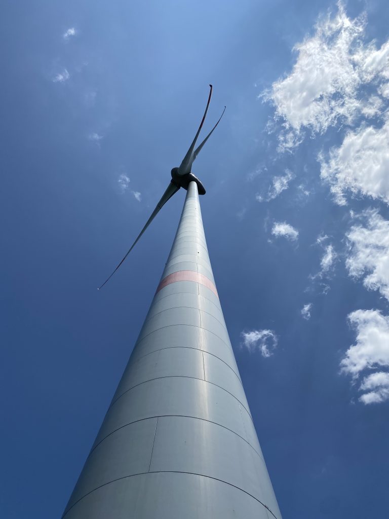 Im Rahmen unserer Nachhaltigkeits-Exkursion war neben den staunenswerten technischen Details auch der Blick auf soziale und ökologische Aspekte interessant. So waren bereits bei den Planungen Kommunen und Bürger:innen beteiligt mit der Folge einer möglichst menschenfreundlichen Umsetzung. Dazu zählt auch, dass die Bürger:innen und Vereine an den Erträgen aus den WEA beteiligt sind und die Wertschöpfung damit in der Region bleibt. Die Akzeptanz konnte dadurch gesteigert werden, dass es eine Schattenabschaltung gibt, wenn bei einem bestimmten Sonnenstand die rotierenden Schatten auf ein Wohngebiet treffen würden.