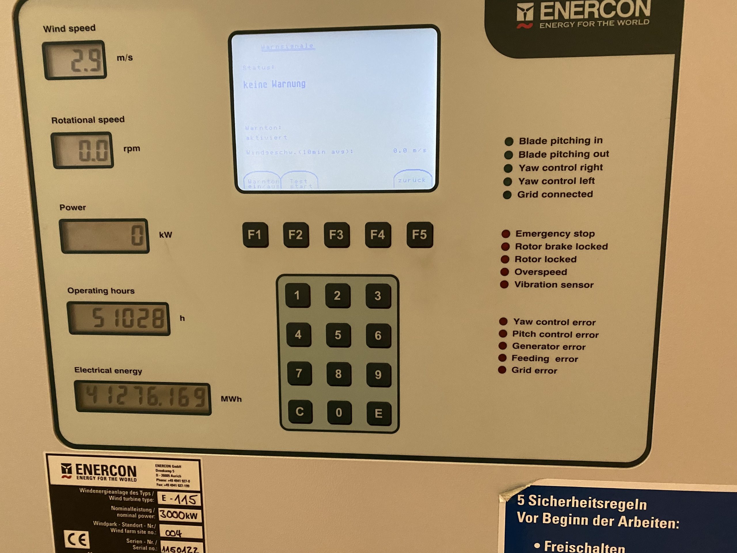Der Stromlieferant für das DLR ist der bereits genannte Windpark Harthäuser Wald. 18 Windenergieanlagen (WEA) liefern hier eine Gesamtleistung von 54 MW, anschaulich gesprochen: Strom für 37.000 Haushalte. Wer sich für weitere Zahlen interessiert: Einschließlich Rotorblättern bringt es eine WEA auf stattliche 207 Meter, die Rotoren haben einen Durchmesser von 115m, werden durch eine Nachführung automatisch in den Wind gedreht und der variable Anstellwinkel der Rotorblätter garantiert die bestmögliche Energieausbeute. Die Steuerung beruht auf einem Mikroprozessorsystem, das über redundant angelegte Sensoren sämtliche Anlagenkomponenten und Wetterdaten abfragt und die Betriebsweise entsprechend anpasst. (Siehe – auch zum Folgenden: www.zeag-energie.de/energie-zukunft/windkraft/harthaeuser-wald.html)