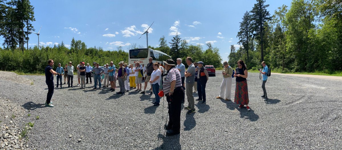 Im Rahmen unserer Nachhaltigkeits-Exkursion war neben den staunenswerten technischen Details auch der Blick auf soziale und ökologische Aspekte interessant. So waren bereits bei den Planungen Kommunen und Bürger:innen beteiligt mit der Folge einer möglichst menschenfreundlichen Umsetzung. Dazu zählt auch, dass die Bürger:innen und Vereine an den Erträgen aus den WEA beteiligt sind und die Wertschöpfung damit in der Region bleibt. Die Akzeptanz konnte dadurch gesteigert werden, dass es eine Schattenabschaltung gibt, wenn bei einem bestimmten Sonnenstand die rotierenden Schatten auf ein Wohngebiet treffen würden.